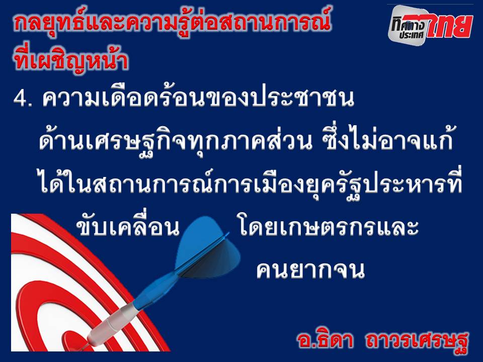 รายการ "ทิศทางประเทศไทย" ทางสถานี PEACE TV ออกอากาศทุกวันเสาร์ - วันอาทิตย์ เวลา 16.10 - 17.05 น. ดำเนินรายการโดย อ.ธิดา ถาวรเศรษฐ สำหรับเทปนี้เป็นการออกอากาศประจำวันอาทิตย์ที่ 17 มกราคม 2559 ประเด็น "ยุทธศาสตร์ประชาชนผู้รักประชาธิปไตย ตอน 2"