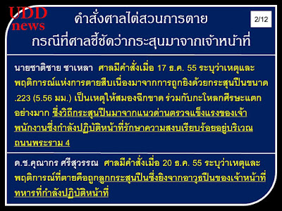 ที่มีคำสั่งศาลซึ่งชี้ชัด ๆ ว่าการตายที่เกิดขึ้นนั้นเป็นกระสุนปืนที่มาจากเจ้าหน้าที่